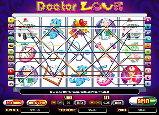 Love Meter. 20 Free Games are awarded for 5 Scattered