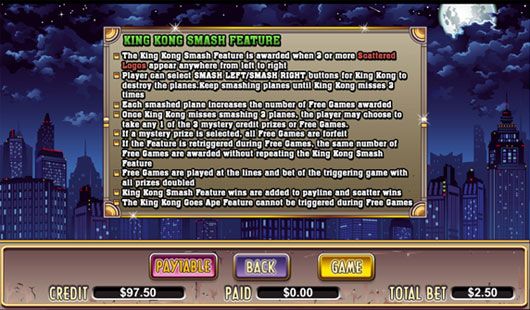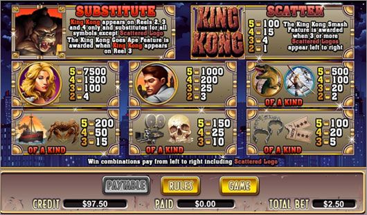 scatter symbol is the King Kong logo and pays