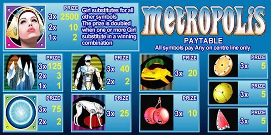 Metropolis Slots is a three-reel, single-payline