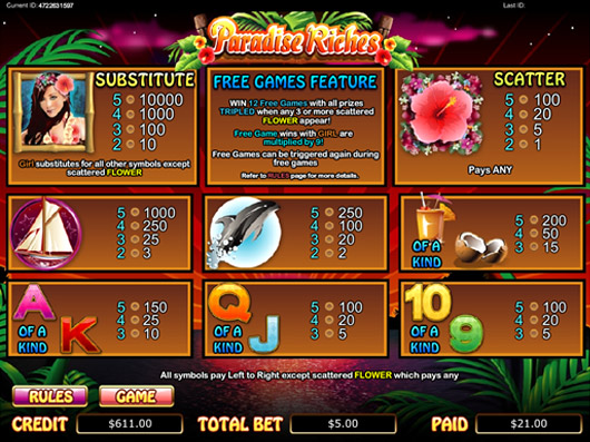 'PAYTABLE': The 'PAYTABLE' can be viewed by clicking